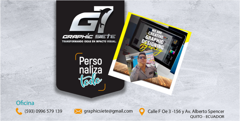 Estamos en calle F Oe3-156 y Alberto Spencer, al sur de Quito, Graphicsiete ofrece servicios de diseño gráfico orientados a fortalecer la imagen de comercios locales, nacionales e internacionales.